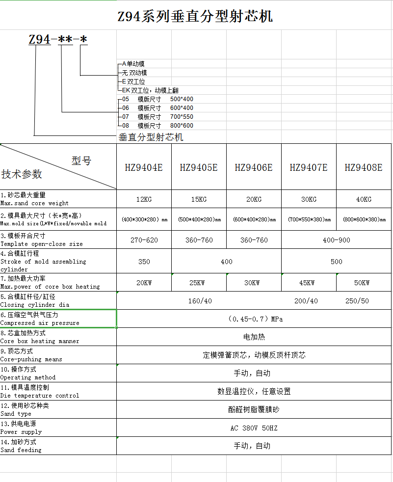 HZ9408垂直分型殼芯機、雙工位射芯機